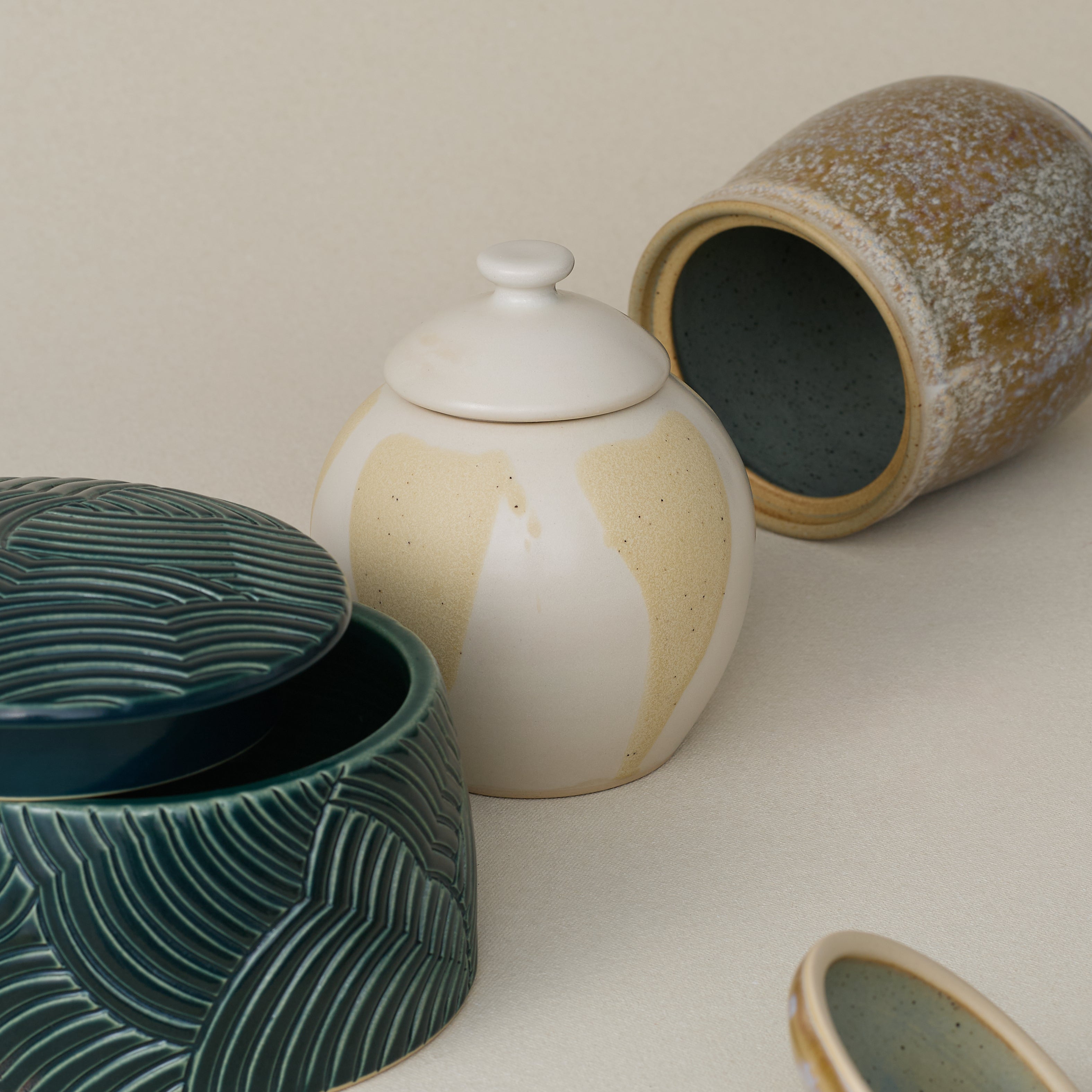 Each canister is hand-thrown and hand-glazed by Rookwood artists in our Cincinnati studio, bearing the subtle marks of its makers and the quiet beauty of the unexpected—one of a kind, deeply personal, and beautifully practical.
